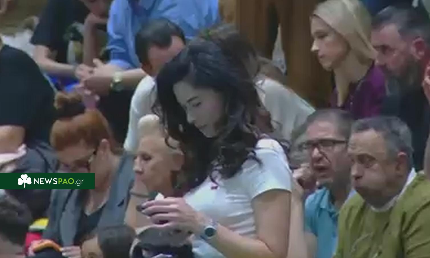 Ο σκηνοθέτης της ΕΡΤ έδωσε πλάνα από την εξέδρα με την πράσινη κερκίδα να έχει τις… ομορφιές της.